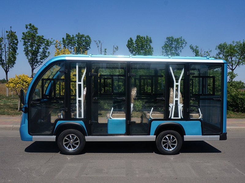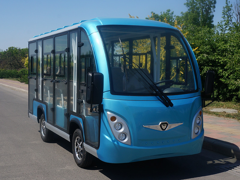 11座封闭电动观光车蓝色