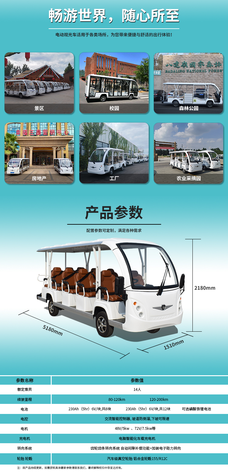 14座封闭电动观光车......